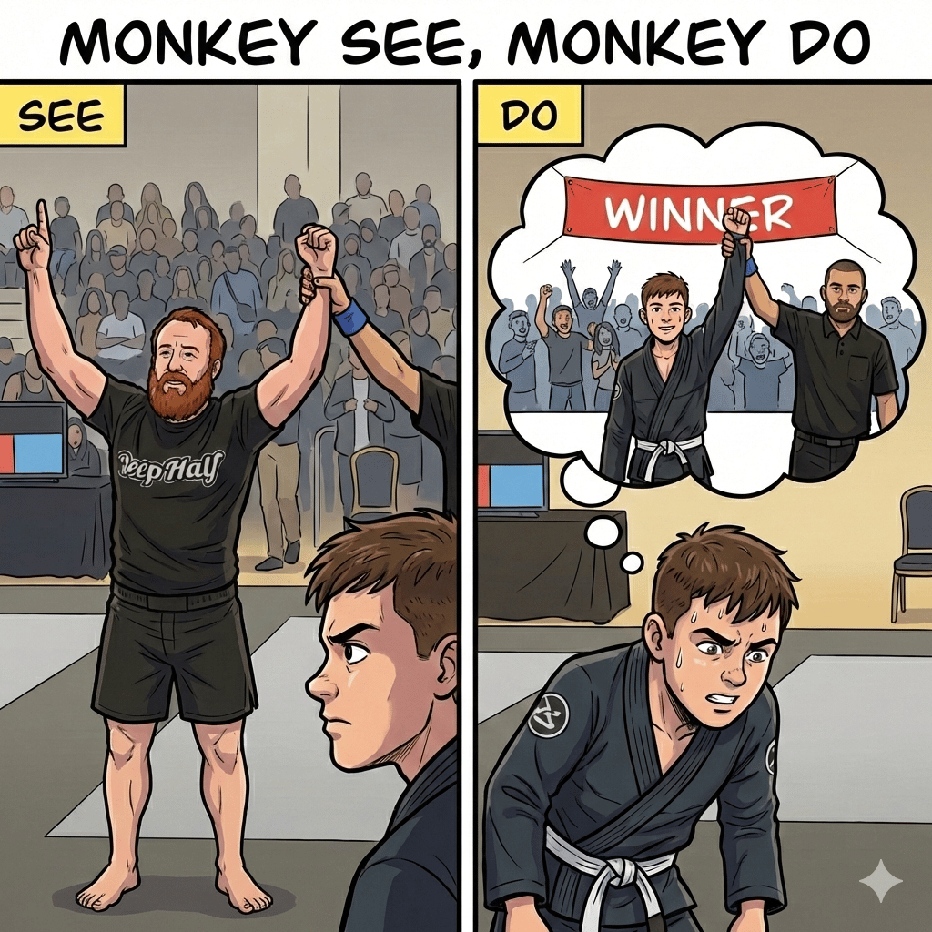 [1] Before watching that performance, I was just kind of “meh” about this thing in the back of my head about trying to compete at the highest level. I broke my hand the second match of my senior year of high school in wrestling. Back then, I wanted to qualify for the California state tournament, which was the highest, most badass level possible. But then I couldn't. A competitive desire went dormant, yet lingered in me until I started doing Jiu-Jitsu in 2012. I proceeded to earn my blue belt in a year or so and then be a blue belt for six years, inconsistently training due to various life circumstances.